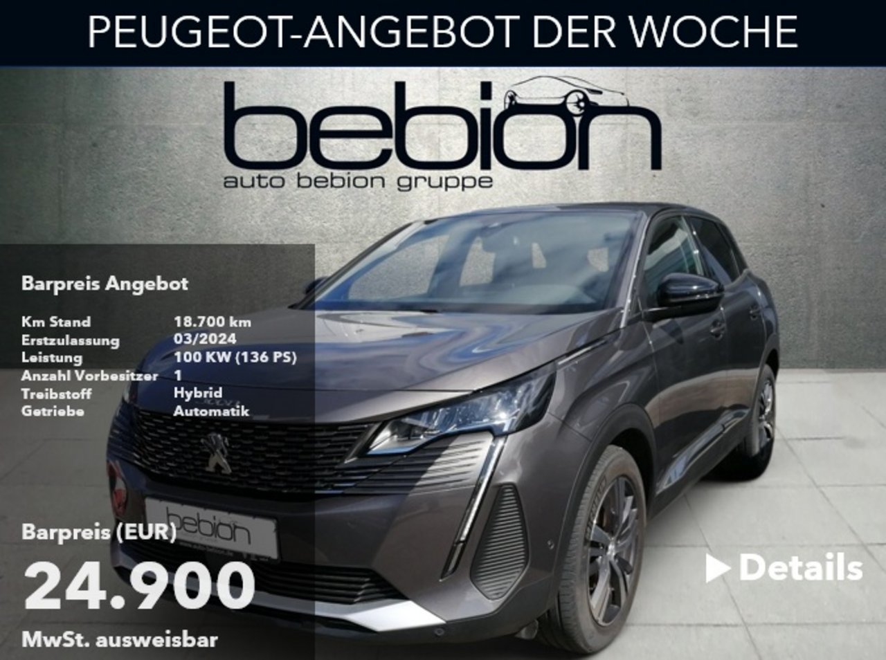 Als Familienunternehmen, heute bereits in der 3. Generation, bieten wir Ihnen hochwertige Fahrzeugtechnik und ein umfassendes Servicepaket für die Marken Peugeot, Citroen, Mazda, Kia, Fiat, Fiat Professional und Abarth. In Magstadt, Herrenberg, Schönaich, Esslingen, Göppingen, 2 x in Reutlingen, Tübingen und Frickenhausen sind wir persönlich für Sie da. Zusätzlich können Sie mit unserer Online-Fahrzeugsuche unsere hochwertigen Fahrzeug-Modelle komfortabel miteinander vergleichen und sich so bequem von zu Hause aus für Ihr Traumauto entscheiden.